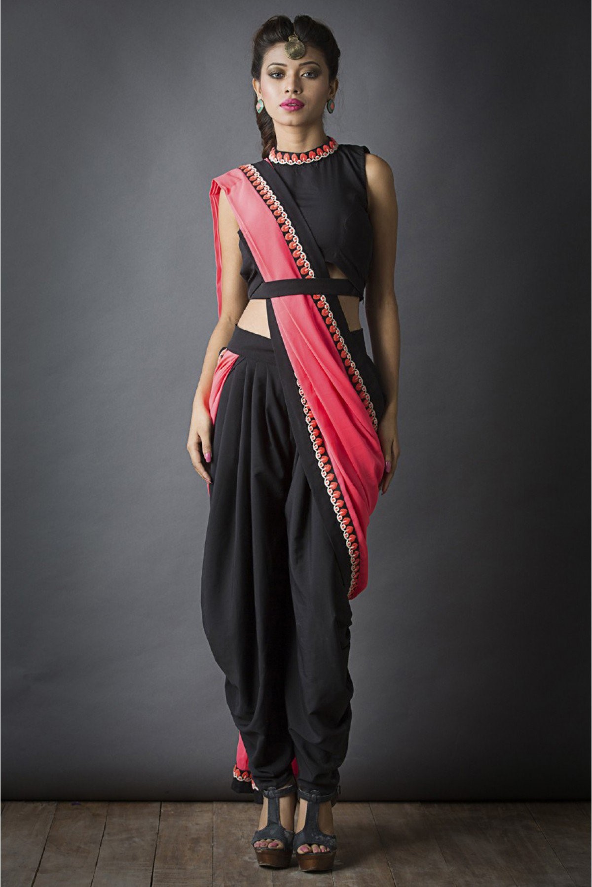 A black shirt can be paired with any color of saree but it looks best with a pastel color saree. So if you want an attractive and interesting look then do try a saree with a shirt and look unique at the party.